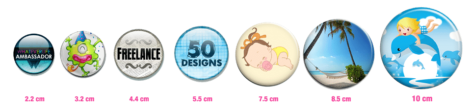 Elaboramos botones publicitarios redondos y de varios usos como destapador , llavero etc , con medidas de 10 mm, 8.5 mm,7.5 mm,6.5 mm y 5.5 mm ,además también tenemos botones rectagulares de 6.4 mm, etc.