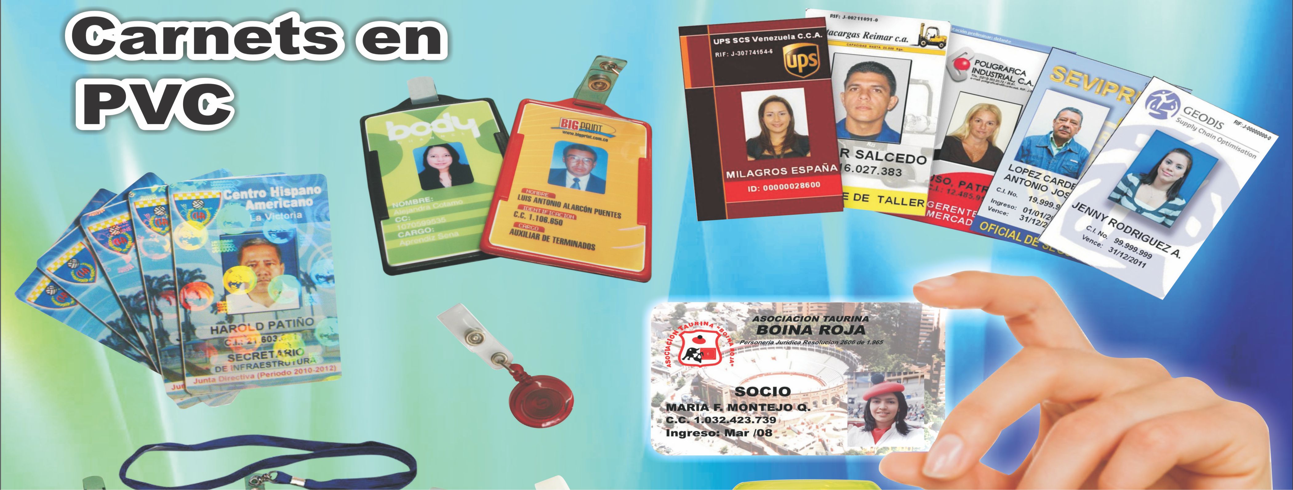 Elaboramos y diseñamos sus carnets en PVC (con Hologramas o sin el) o PICK ,con el logo de su empresa o institución , ademas vendemos los portacarnets y pendones para los mismos ,setc.
