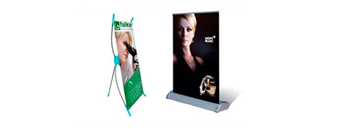 Su Publicidad , Avisos e información ,podrá se exhibida en porta pendon , araña ( 80 x 200 cms, 100 x 200 cms , 80 x 100 cms , 60 x 160 cms ,80 x 180 cms , mini 20 x 42 cms) , o rollups ( 80 x 200 cms ,90 x 200 cms , Mini A3 Y A4), etc.